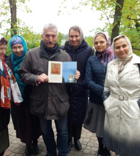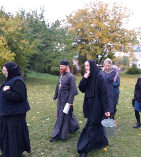 Ми приїхали напередодні одного з храмових свят – день пам’яті блаженного Варфоломея, прославленого в 2014 році, мощі якого зберігаються в Свято- Троїцькому монастирі. Сестри готувались до свята, але знайшли можливість відкрити і провести нас у храм, де о. Петро відслужив молебен, вшановуючи не тільки блаженного Варфоломея, але й дивну подвижницю Божу преподобномученицю Рафаілу, ігуменю Чигиринську, замучену безбожниками в 1926 році, святі її мощі теж покояться в монастирі перед яким кожного дня читається акафіст.